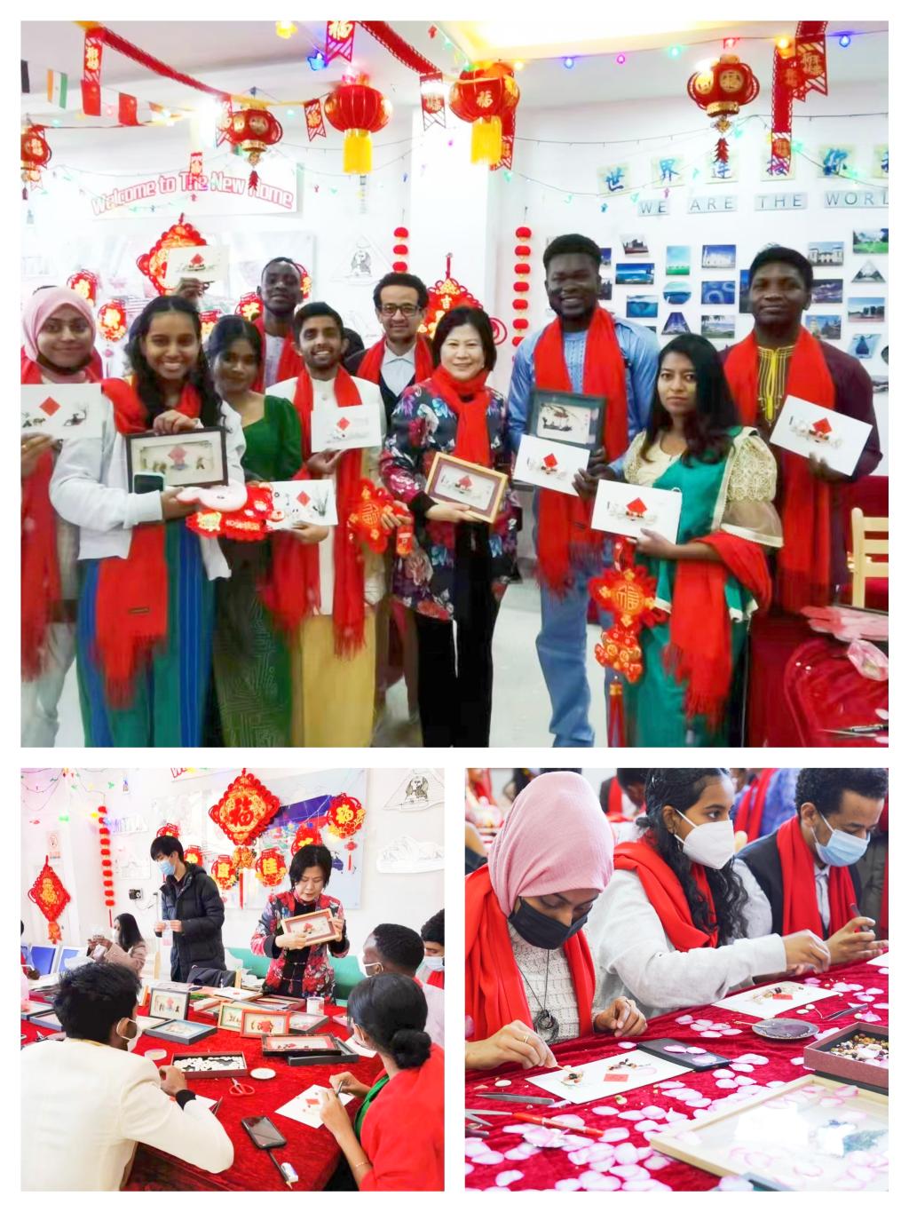 (国际交流合作中心)副院长郭艳秋及部分学院教师参加了此次活动。来自伊朗、巴基斯坦、斯里兰卡、坦桑尼亚、津巴布韦等国家的40余名留学生在活动中体验中国新春民俗,感受中国传统佳节的魅力。