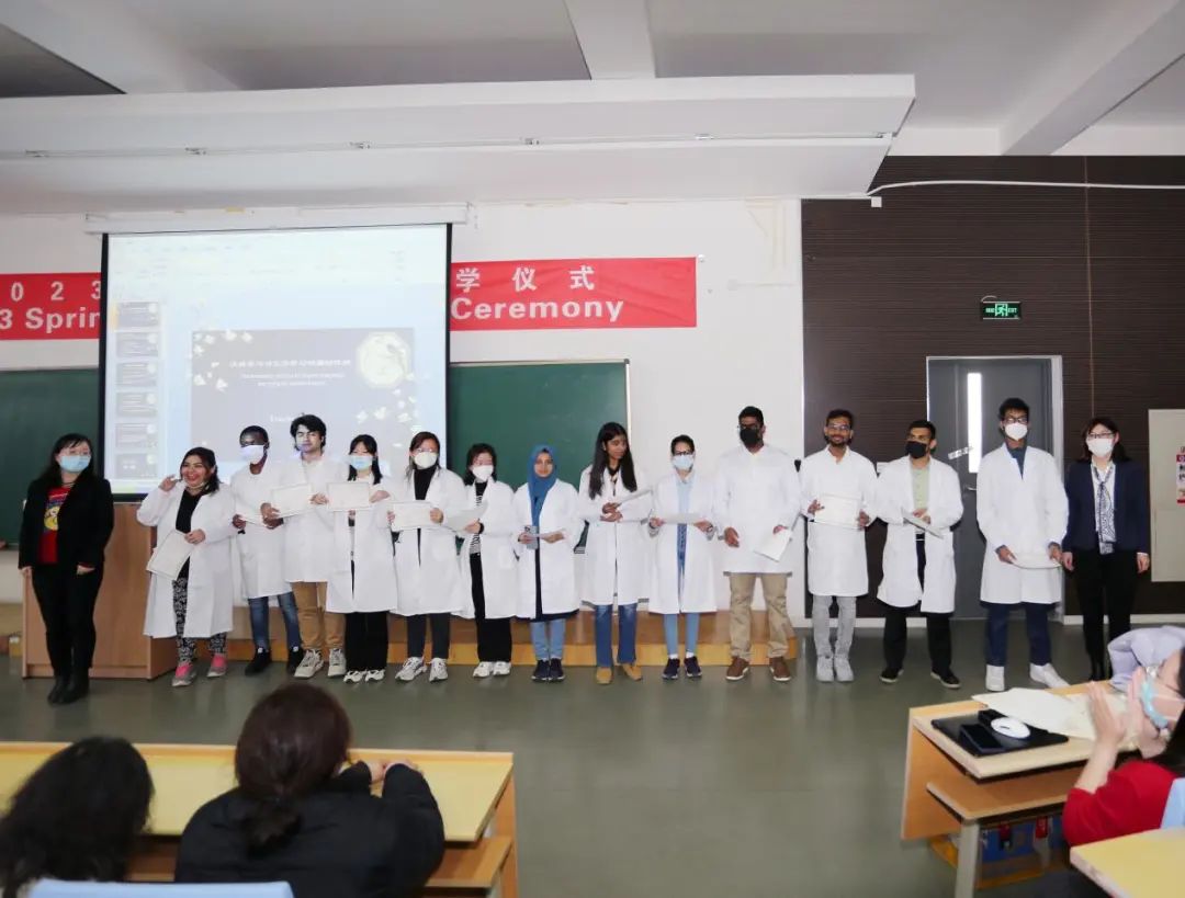 紧接着,斯里兰卡籍留学生伊努卡和伊朗籍留学生玛雅代表新生发言,他们表达了对于克服疫情带来的种种困难最终在校园与老师和同学们相聚的欣喜,并立志将秉承校训,将大医作为自己医学事业开始的起点,为成为一名优秀的医学工作者而努力。