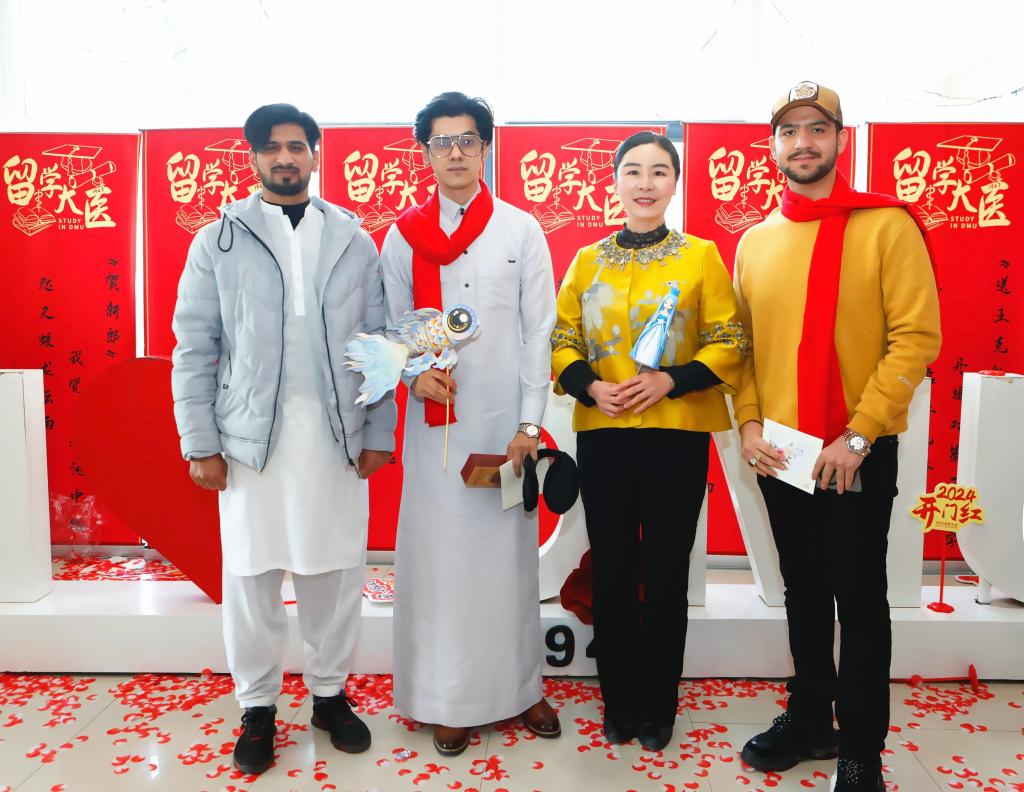 院长卢苇、直属党支部副书记郭艳秋、学院教师一起,同来自伊朗、斯里兰卡、巴基斯坦等国家的60余名留学生共同欢度新春佳节。