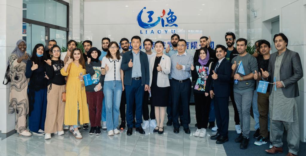 组织巴基斯坦、喀麦隆、尼日尔、也门、伊朗、约旦、巴勒斯坦、伊拉克等国家的留学生走进辽渔集团,开展“感知中国—辽渔行”社会实践活动。