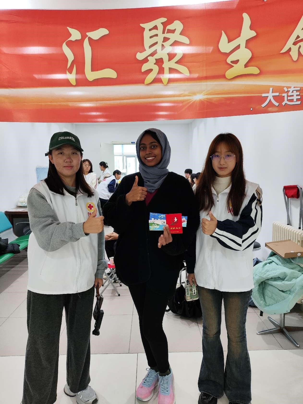 50余名留学生在学校首次参与了大连市血液中心组织的无偿献血活动,以实际行动展现了对人类命运共同体理念的深刻理解和积极实践,展现了他们的国际主义精神和对社会责任的担当。