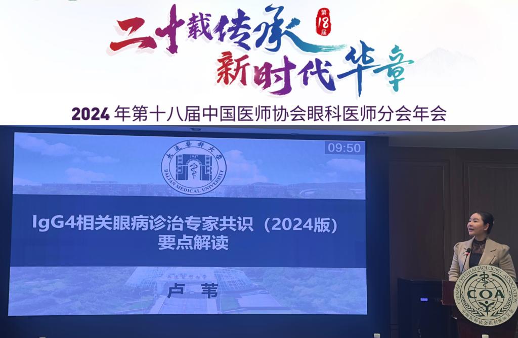 中美眼整形眼眶病研究中心主任卢苇教授应邀出席本次大会,并做了题目为“IgG4相关眼病诊治专家共识(2024版)要点解读”的专题发言,向与会的各位同道介绍了由我中心执笔并刚刚发表的《IgG4相关眼病诊治专家共识(2024版)》及对该类复杂疾病的诊疗探索经验,并号召在场的专家同道们共同努力做好共识的宣传和普及,得到了在场听众的积极响应。