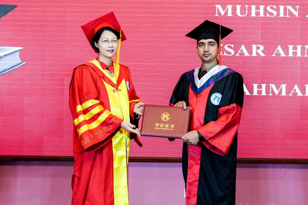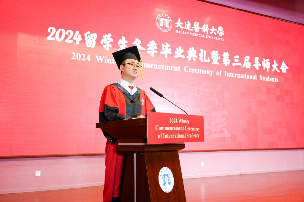 2024留学生冬季毕业典礼暨第三届导师大会在学校图书馆一楼学术报告厅举行。校长刘莹、副校长邵淑娟,校内职能部门及部分二级学院领导、留学生教师代表、教学督导、国际研究生导师、留学生实践教学基地单位代表、91猫先生