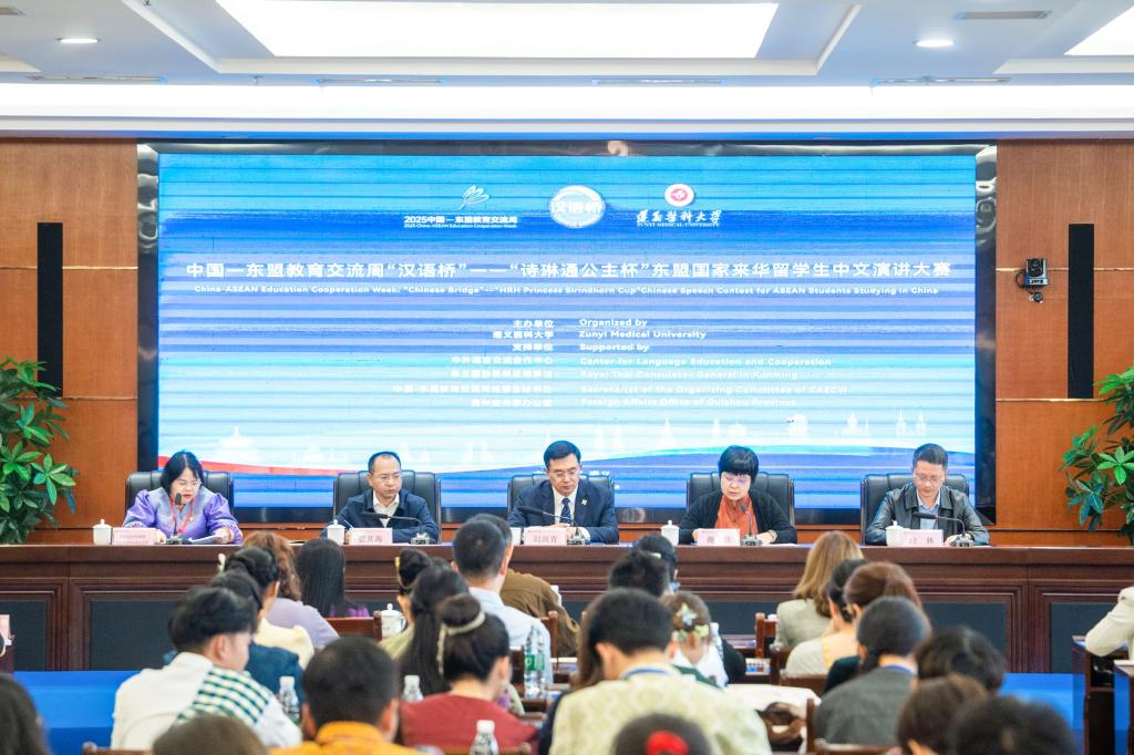 10月16日,2025中国—东盟教育交流周“汉语桥”—“诗琳通公主杯”东盟国家来华留学生中文演讲大赛在遵义医科大学举行,来自浙江大学、中央民族大学、中山大学等全国十余所高校的泰国、马来西亚、老挝、越南、柬埔寨、缅甸等国留学生齐聚一堂,以“书香中国”为主题讲述他们与中国文化的故事。91猫先生