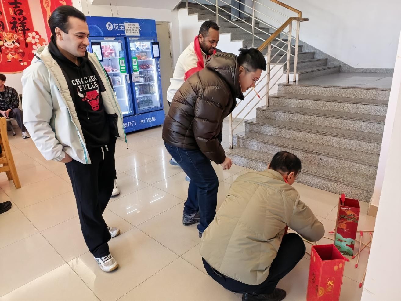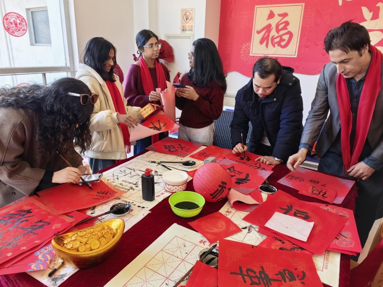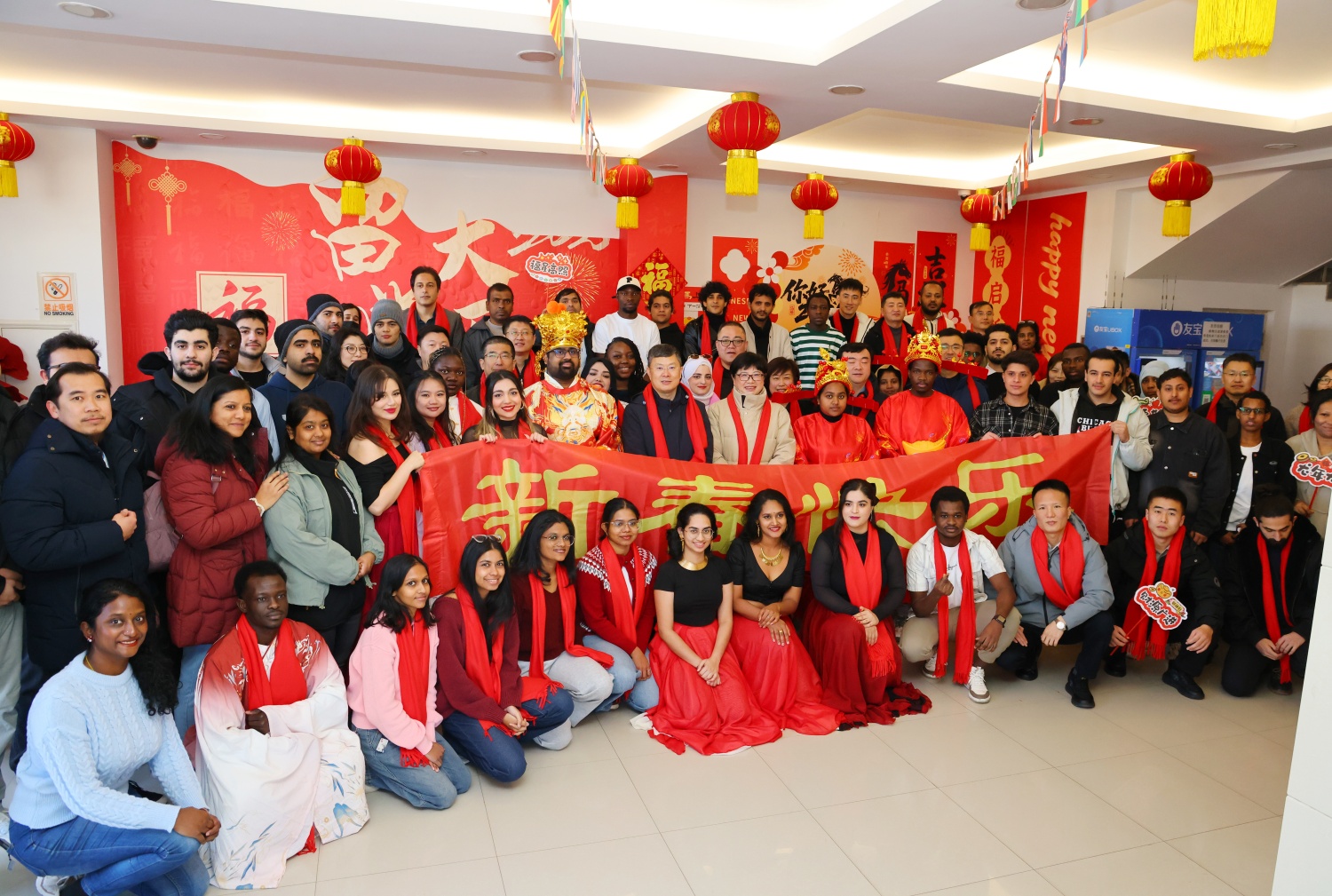 班子成员,同来自伊朗、斯里兰卡、巴基斯坦、也门等国家的五十余名留学生共同欢度新春佳节。