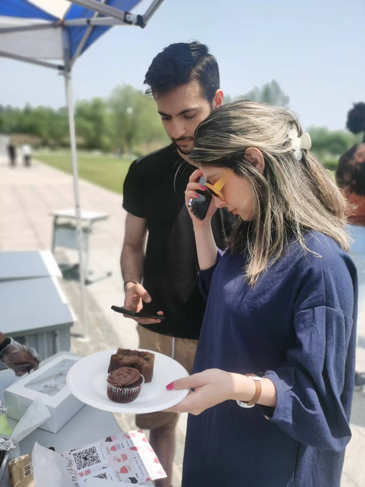 斯里兰卡烤肉串,伊朗蔬菜面条汤,巴基斯坦比尔亚尼菜饭,印度鸡肉卷,南非肉桂卷,充满各国浓郁特色的美食让师生们味蕾大开,争相购买品尝。