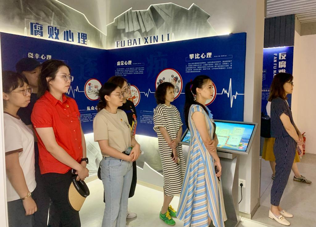 步入“正盛年·奋发有为”展厅,党员教师们以“红船曙光”为起点,重温了党的百年光辉历程,并在讲解员的指引下,了解了不同历史时期的党风廉政建设;同时,通过360行多点互动触控屏和换装体验,学习了各行业坚守岗位、廉洁奉公的典范事迹,筑牢拒腐防变的思想底线。