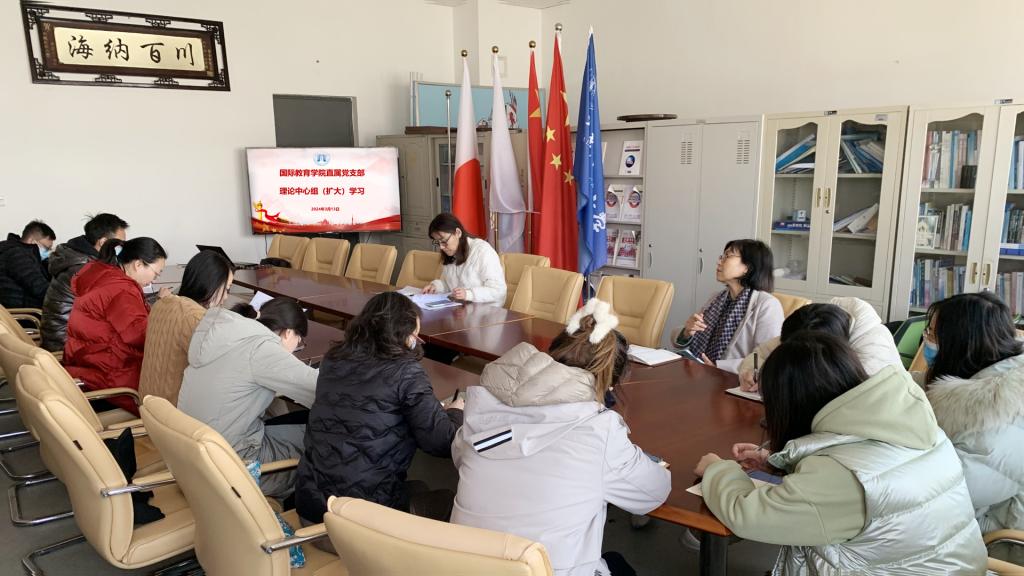 (国际交流合作中心)直属党支部在学院322会议室召开了理论学习中心组(扩大)学习暨2024年全面从严治党工作会议。会议由党支部副书记郭艳秋主持,全体党员参加了此次会议。